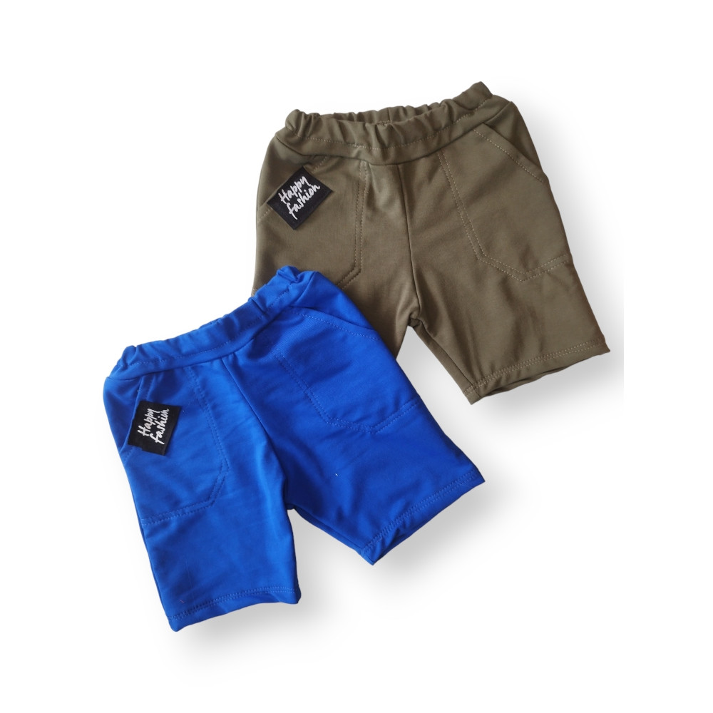 Pohodlné teplákové bermudy (kraťase) s vreckami vpredu aj vzadu. Na zadnom vrecku menšia potlač.