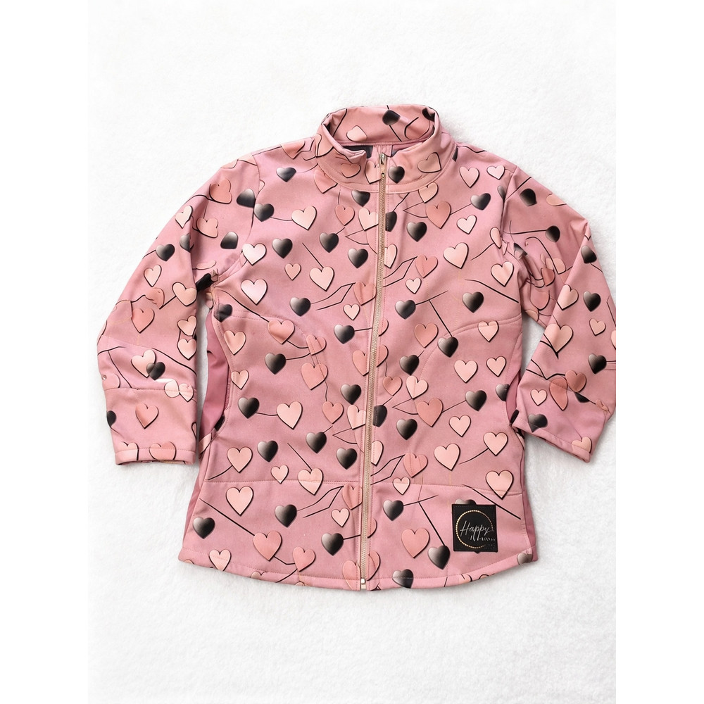 Táto dievčenská tepláková bunda na zips si okamžite získa srdce každej malej parádnice. Jemný ružový dizajn doplnený hravými srdiečkami vytvára originálny kúsok, ktorý je nielen krásny, ale aj maximálne pohodlný. Bunda je ušitá z kvalitnej certifikovanej teplákoviny, ktorá je príjemná na dotyk a vhodná na každodenné nosenie.