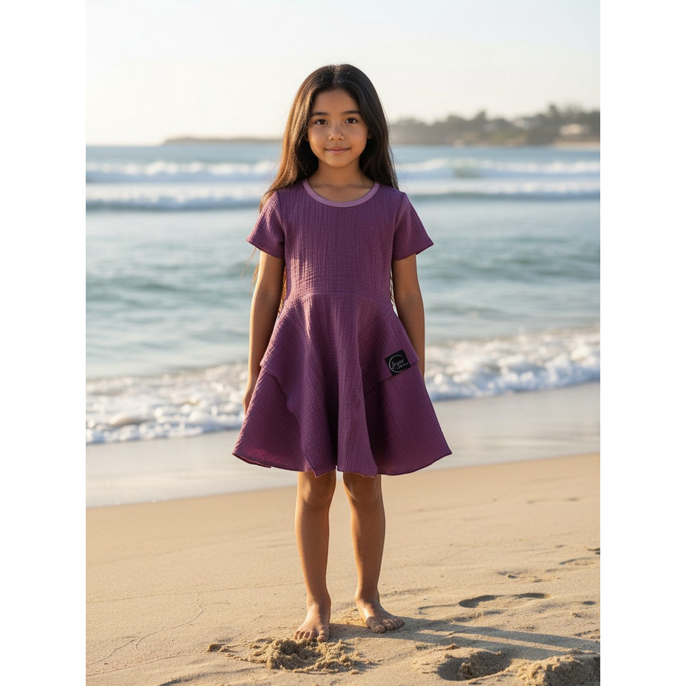 Vyrobené zo 100 % bavlneného mušelínu, ktorý je jemný, ľahký a dokonale priedušný – ideálny na teplé dni. Špeciálny strih so širšou sukňou vytvára krásny „točivý efekt“, ktorý baby milujú.