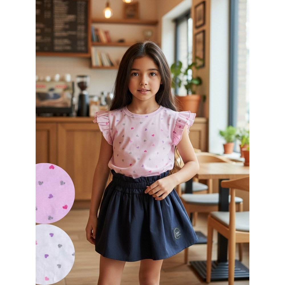 srdiečok doplnená o volánové rukávy vytvára krásny dievčenský vzhľad,