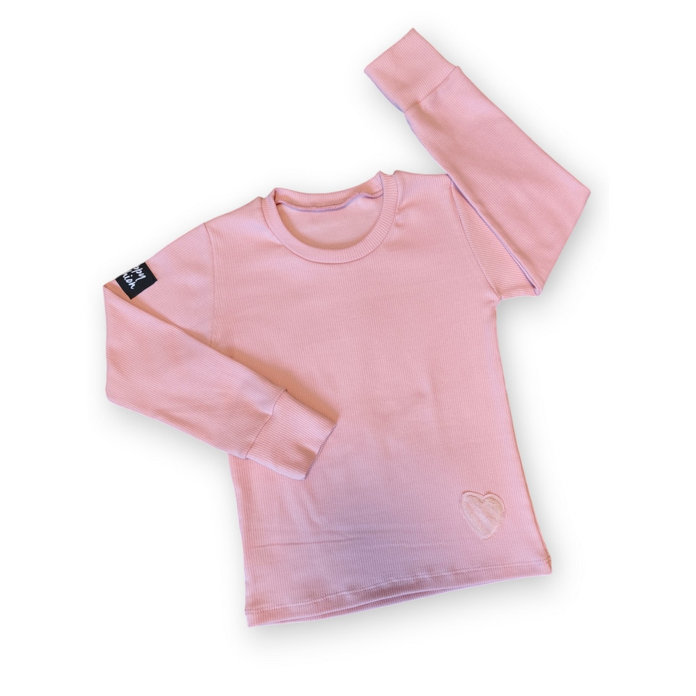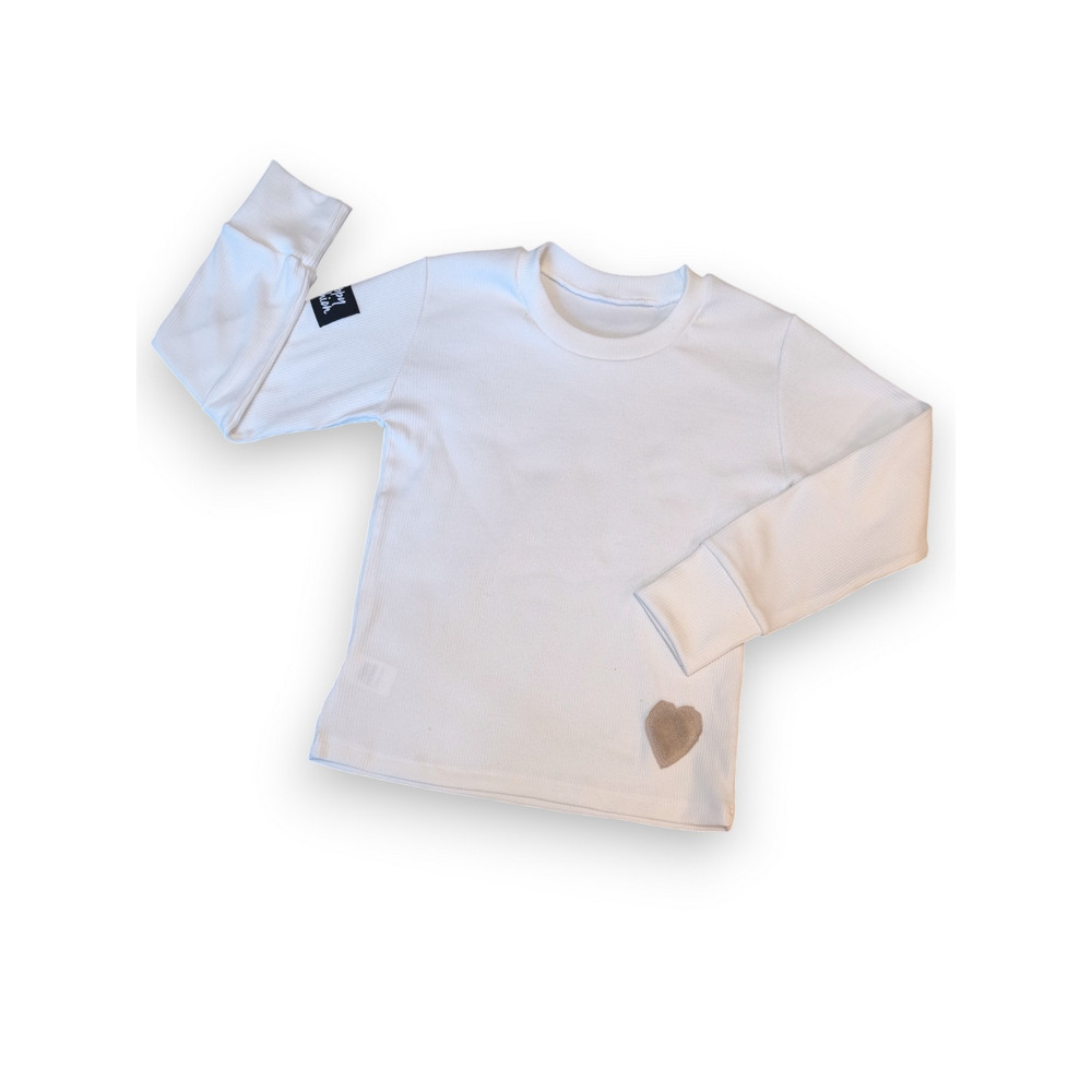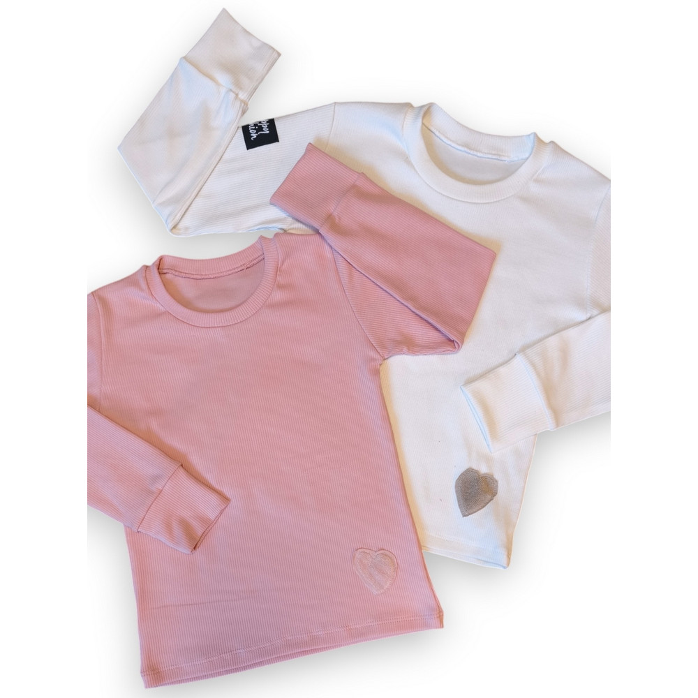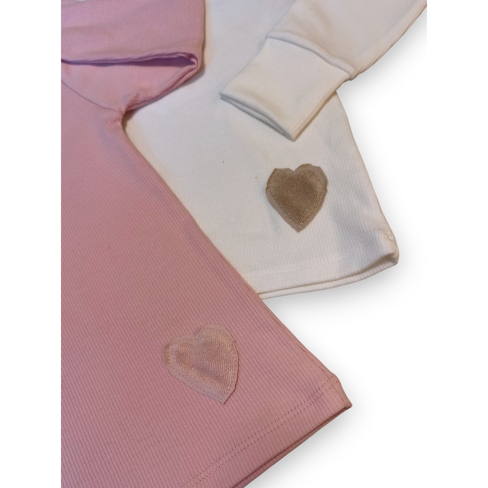 Minimalistický dizajn dopĺňa milý detail srdiečka, ktorý dodáva tričku nežný a štýlový vzhľad – ideálny pre malé aj väčšie slečny.