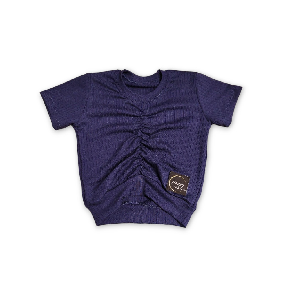 Dievčenský bavlnený crop-top z tenkého vrúbkovaného materiálu