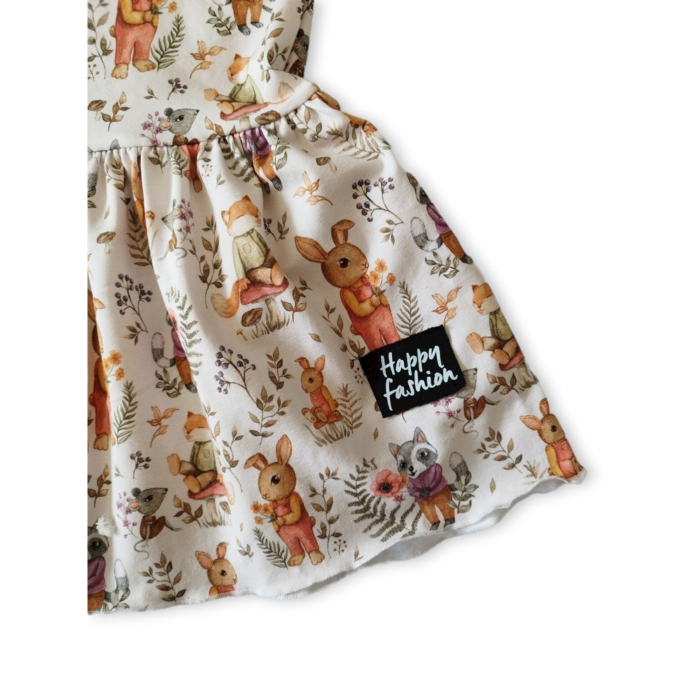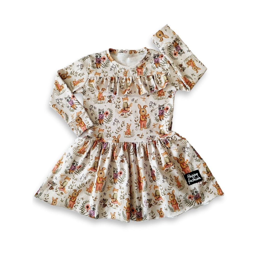 Dievčenské šaty s rozkošnými zvieratkami, zdobené volánikmi.