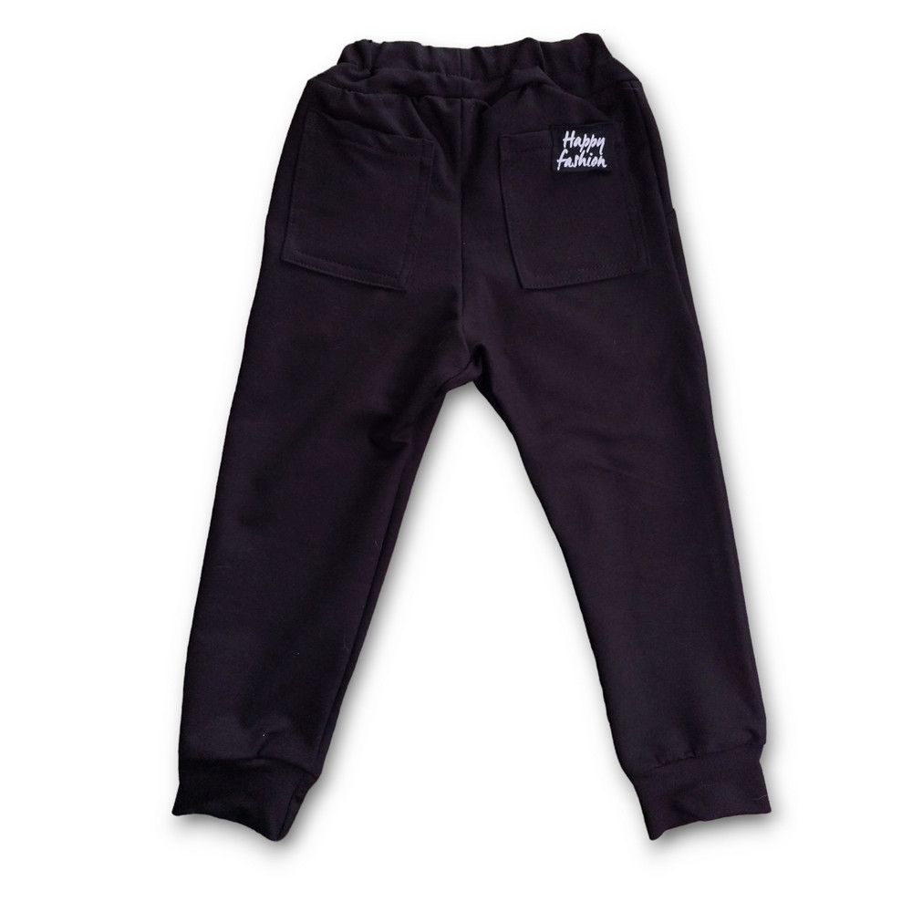 Tepláky sú v páse na gumičku, majú dve predné vrecká, dve zadné vrecká, elastické spodné patenty z rovnakej látky.